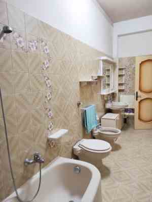 Bagno dotato di tutti i sanitari con vasca da bagno con doccia.