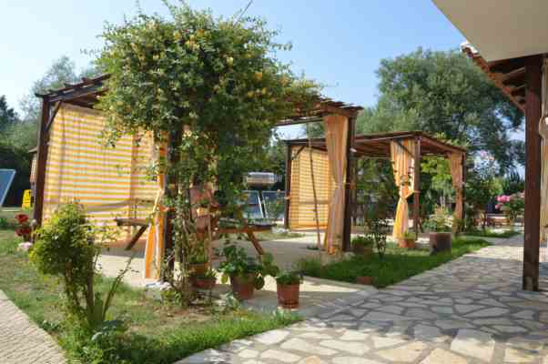 Siamo a Sidari uno dei luoghi piu' belli dell'isola di Corfu' ,gli appartamenti sono monolocali con 4 posti letto e bilocali che possono ospitare fino a 6/7 persone , tutti muniti di angolo cottura attrezzato di tutto stoviglie e tutto quello che serve anche di biancheria ,gli appartamenti sono muniti di aria condizionata wiifi in ogni camera sono posti su di un area di 4000 metri di giardino attrezzato con giochi tavoli con gazebi barbecue e anche docce esterne di legno per chi non far lavorare la propria meta .